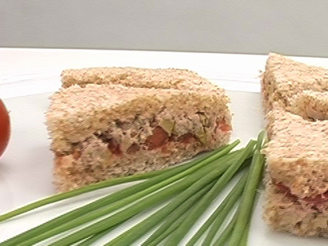 Интересный рецепт сэндвича для любителей тунца.Состав:тунец в масле — 1 банка;помидоры — 6 кусочков;хлеб — 6 кусочков;масло — 120 гр;немного оливок;соль, перец, оливковое масло, орегано — по вкусу.