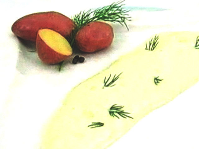 Рецепт воздушной картофельной пены.Состав:картофель — 280 гр;сливки — 100 гр;оливковое масло — 30 гр;соль, перец, укроп.