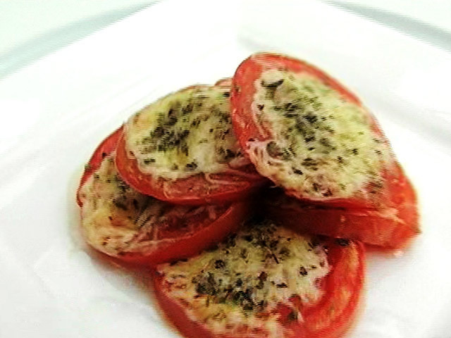 Легкая и сытная закуска из помидор.Состав:помидоры — 2 штуки;сыр — 100 гр;сахар — 1 столовая ложка;оливковое масло — 1 столовая ложка;соль, орегано — по вкусу.